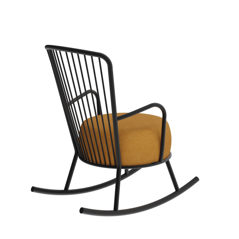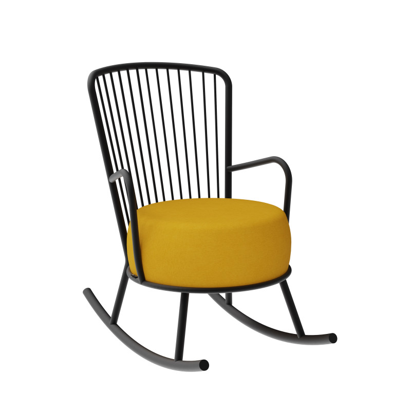 | Maintenance | Very little dirt, the steel can be cleaned with a soft cloth slightly damp, without any cleaning product. The Rocking Chair Betty is entirely welded, therefore very robust. The seat is removable and can be replaced according to your desires. All our fabrics are extremely resistant and can be cleaned in case of incidents. The ideal is to intervene as quickly as possible using a damp cloth and then dry well with a towel or a hair dryer not too hot. Prefer concentric movements. Depending on the stain, you can use soapy water. |