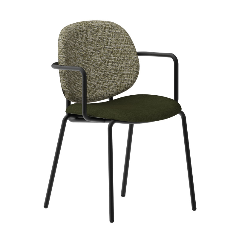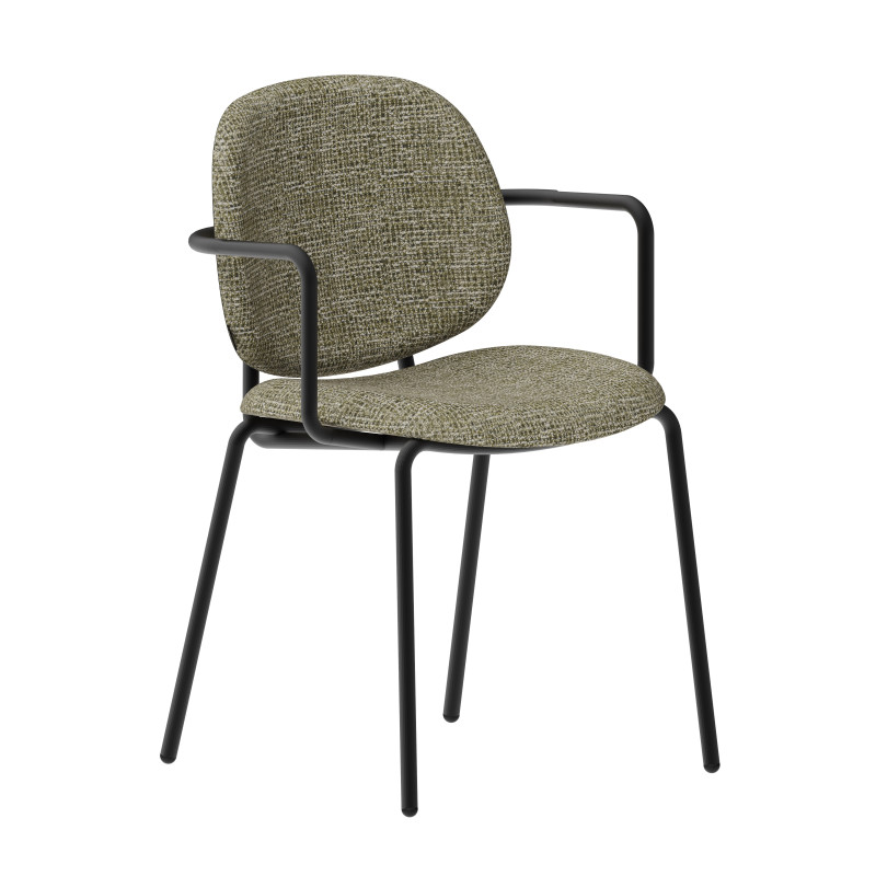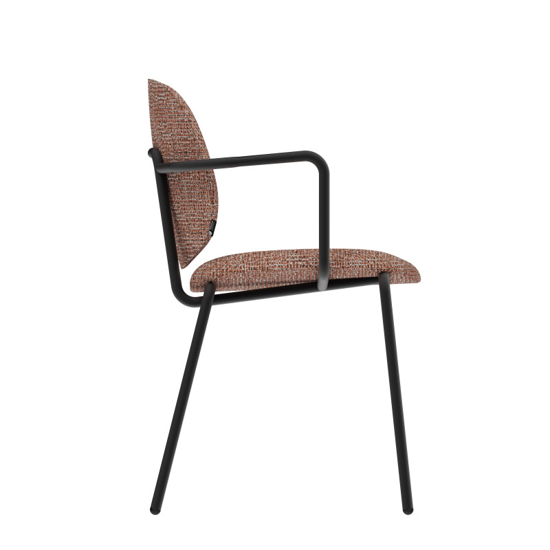 | Ideal finishes | The structure is available in powder-coated steel in black, ivory and brown. Our factory has its own paint line: customization is possible. Please do not hesitate to contact us. The addition of solid oak on the armrests gives it a timeless character. Also available without armrests. As a mobile seating unit, it can be adapted to any space: as a centerpiece in the living room or in a library to create a reading corner. Its dense foam makes it a very comfortable seat.