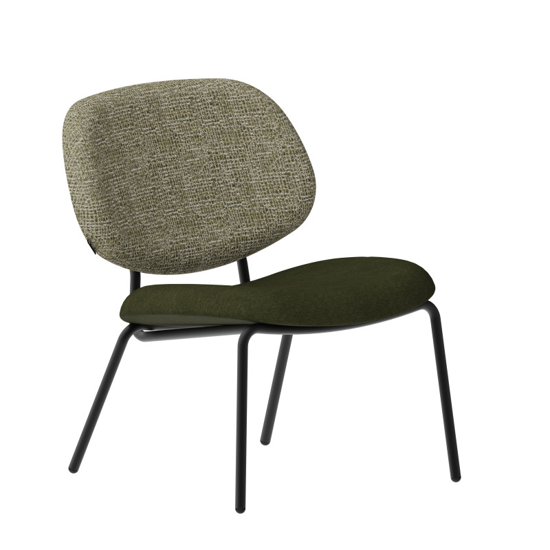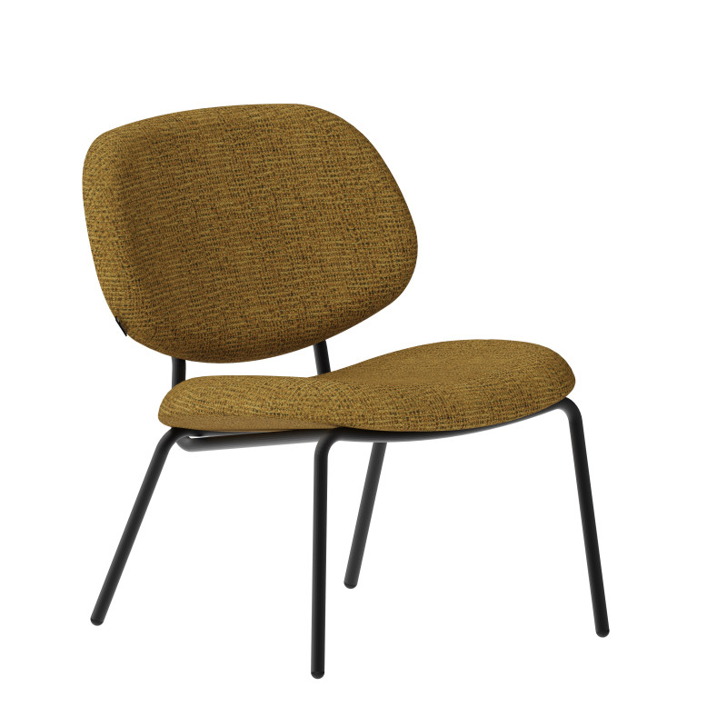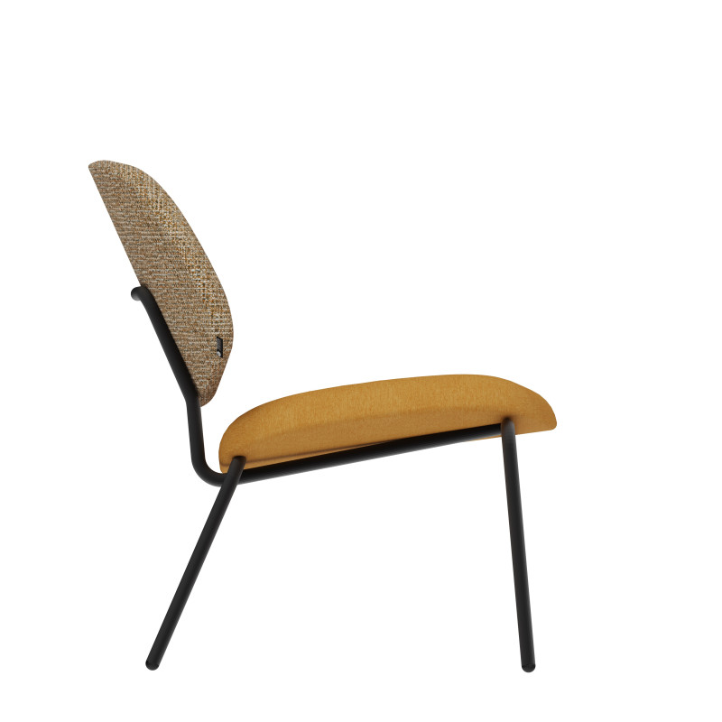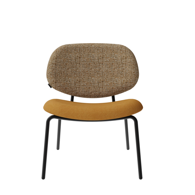 | Ideal finishes | The structure is available in powder-coated steel in black, ivory and brown. Our factory has its own paint line: customization is possible. Please do not hesitate to contact us. The addition of solid oak on the armrests gives it a timeless character. Also available without armrests. As a mobile seating unit, it can be adapted to any space: as a centerpiece in the living room or in a library to create a reading corner. Its dense foam makes it a very comfortable seat.