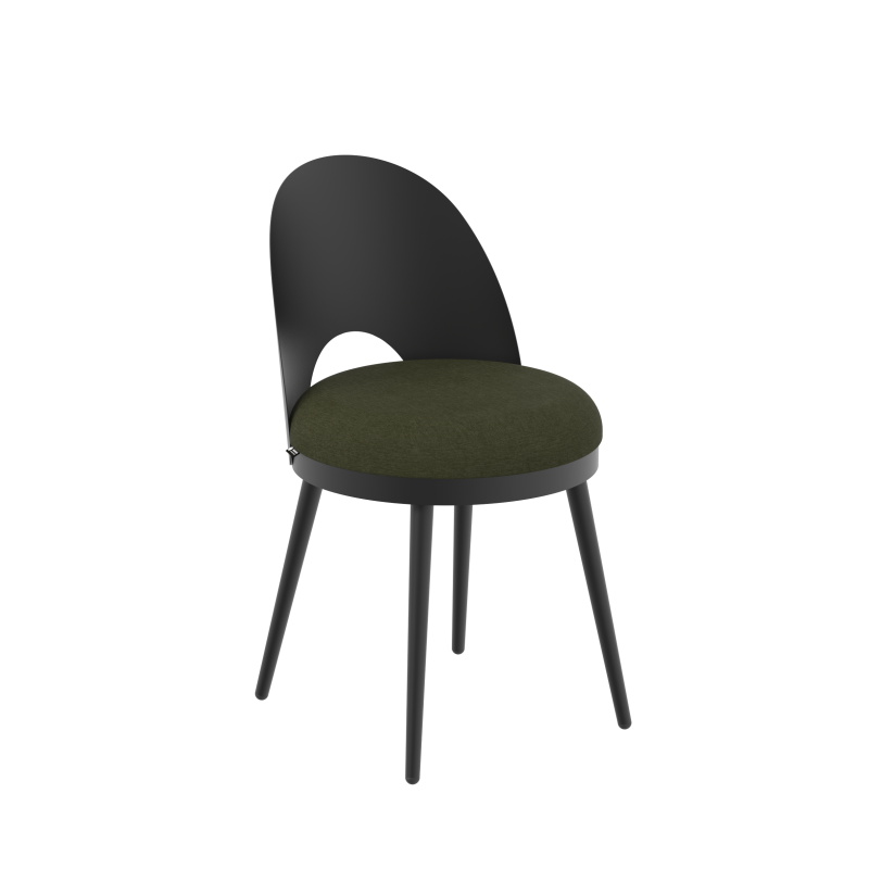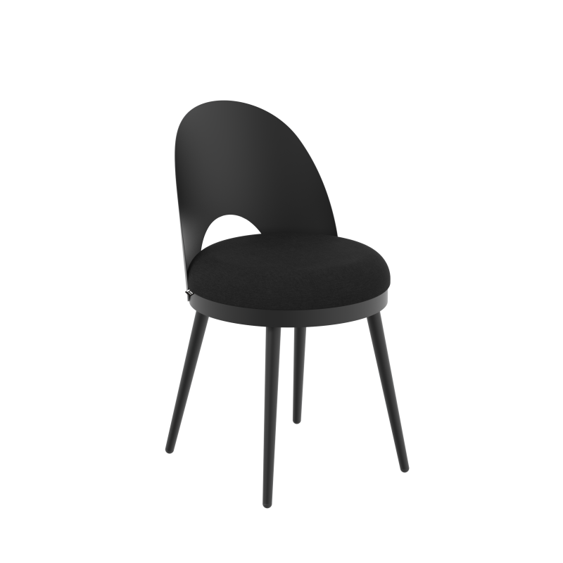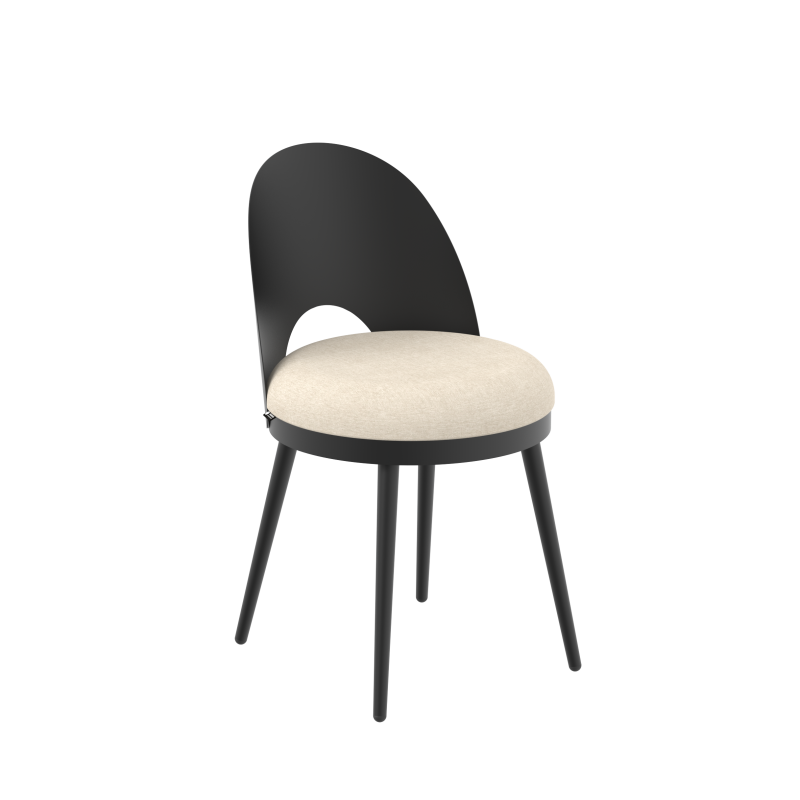 | Ideal finishes | The back of the backrest is made of rolled steel to perfectly fit the back and make the support comfortable. The structure is proposed in black powder coated steel. Our factory has its own paint line: customization is possible. Do not hesitate to contact us. Its dense foam makes it a very comfortable seat. You can find your happiness among 3 categories of fabric: Chinés: 40% acrylic 60% polyester, these fabrics are extremely resistant (Martindale 80 000 turns). Timeless, you can find in one of them a colorful particularity allowing you to match it with your interior. As elegant as they are welcoming, our velvets are 100% polyester. They are very resistant (Martindale 50 000 turns). If you want recycled polyester, choose our 3rd range: Chili fabrics from Gabriel. It is also very resistant (Martindale 60 000 turns), fireproof. A light black thread is added to the color for a perfect match with the black of the steel. |