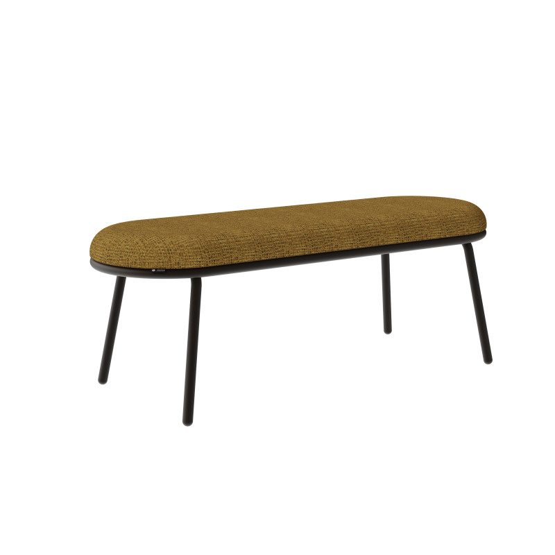 Structure Acier Peinture Poudre époxy thermolaquée Dimensions (en cm) L.120 x P.44 x H.45, H. assise 45 Poids - kg Livré monté Tissus Cat A, B Échantillons disponibles sur demande | ||