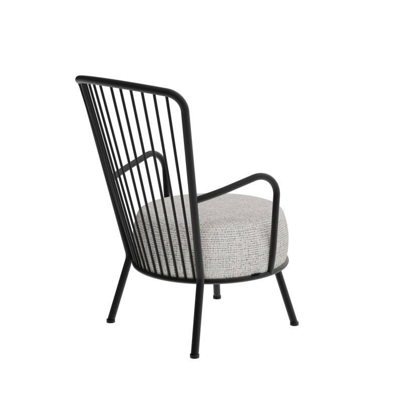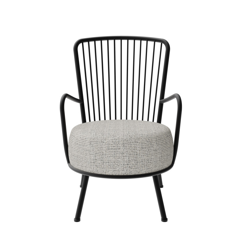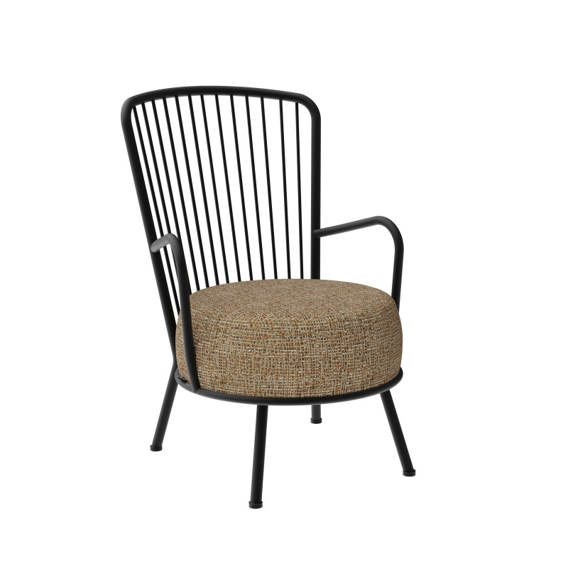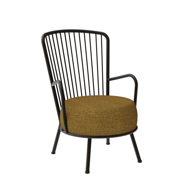 Structure Acier Peinture Poudre époxy thermolaquée Dimensions (en cm) L. 65 x P. 72 x H. 91, H. assise 45 Tissu Catégorie A, B Poids 15 kg Échantillons disponibles sur demande | ||