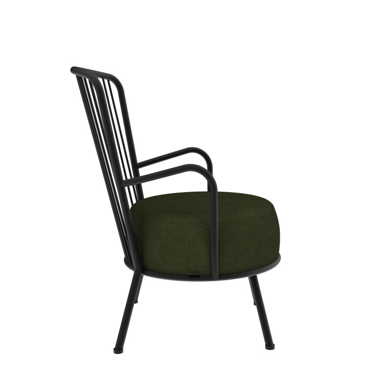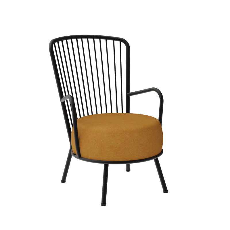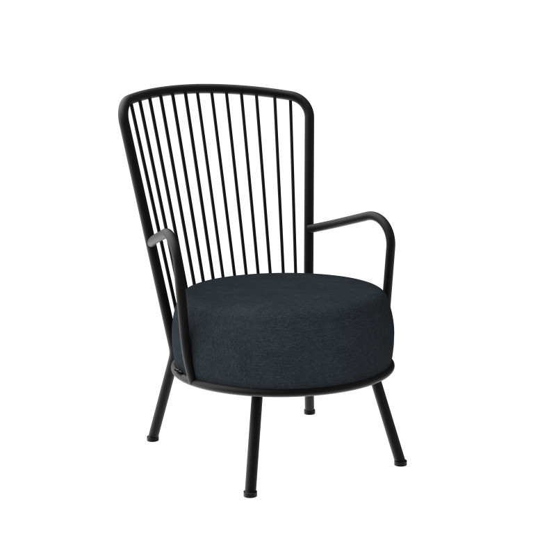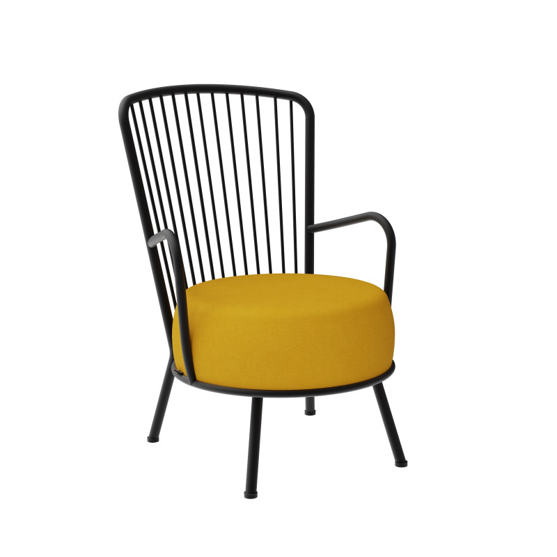 Structure Acier Peinture Poudre époxy thermolaquée Dimensions (en cm) L. 65 x P. 72 x H. 91, H. assise 45 Tissu Catégorie A, B Poids 15 kg Échantillons disponibles sur demande | ||